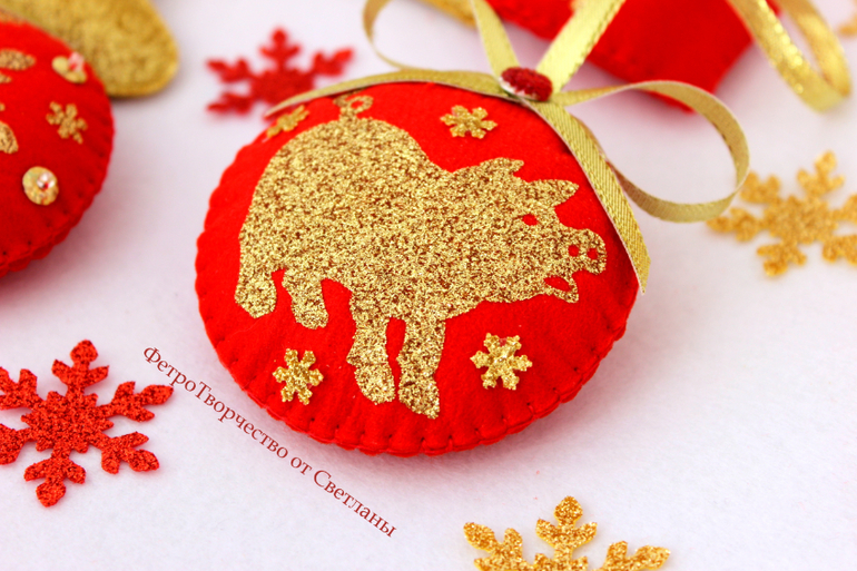 Светлана, а мелкие детали (снежинки) и хрюшку Вы на клей посадили? Очень нарядный набор игрушек!