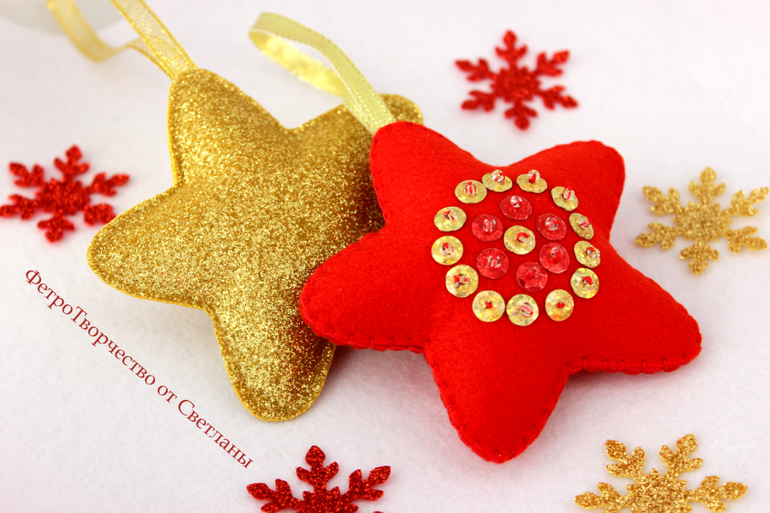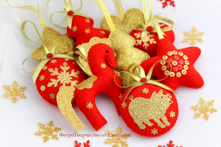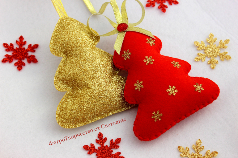 Елочные игрушки из фетра .