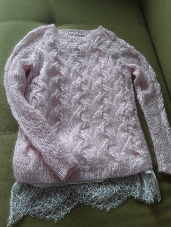 Вязание спицамиДавно я хотела связать себе мохеровый свитер, но все никак не могла собраться. А тут увидела модель и решила связать себе такой же. Ну не в магазине ведь искатьмохеровый cвитерок. Первый раз связала образец, и показался образец тонковат. Добавила тонкую ниточку мериноса с кашемиром. Это была ошибка!! Хотя свитер и просвечивпет, но он очень теплый, хотя непосвященным в это трудно поверить