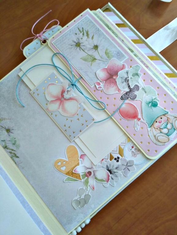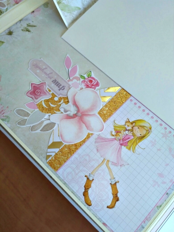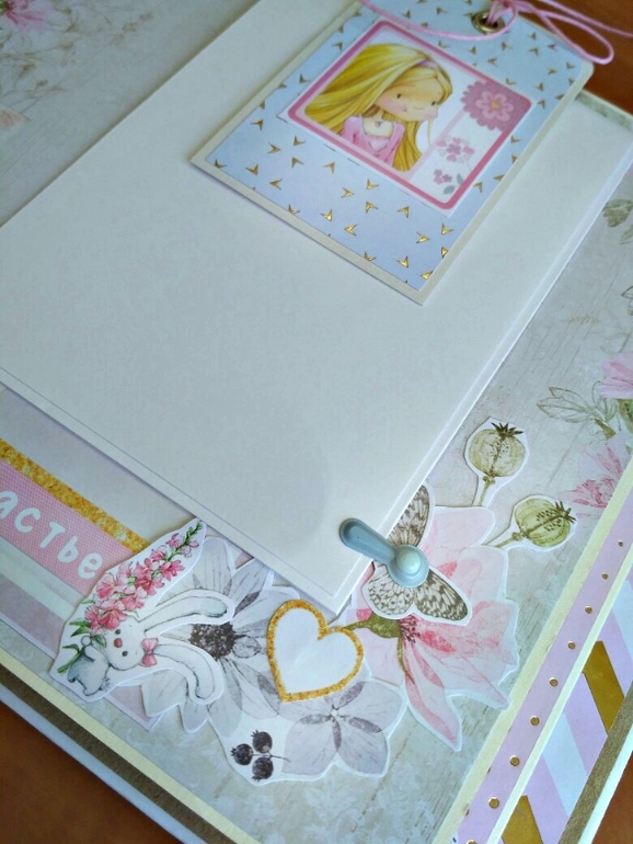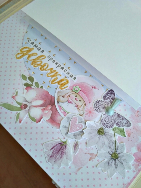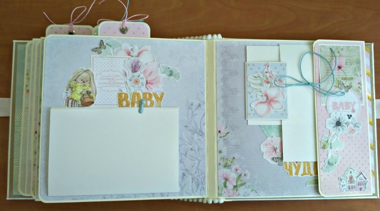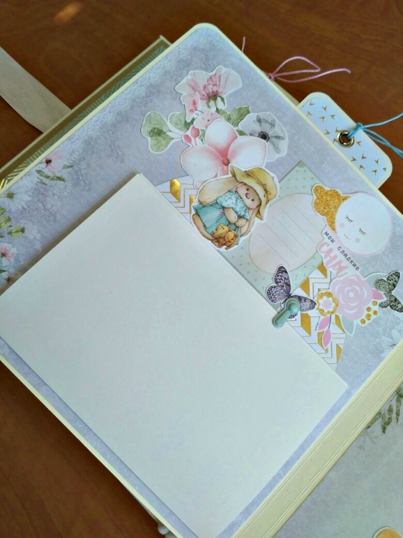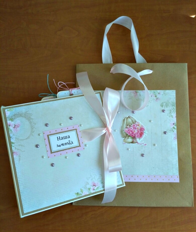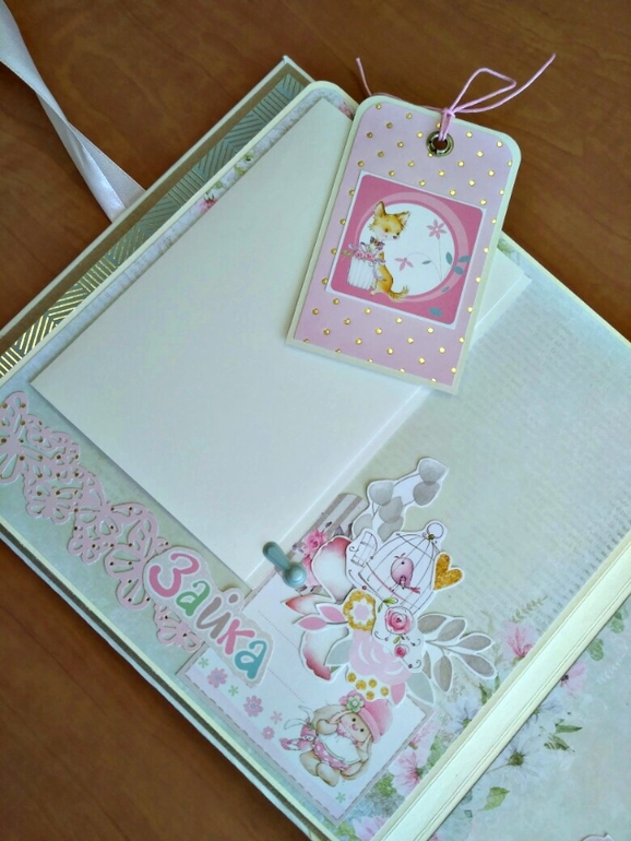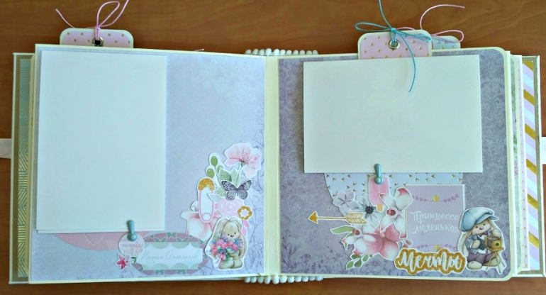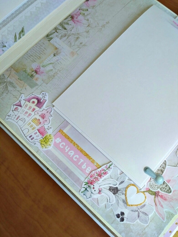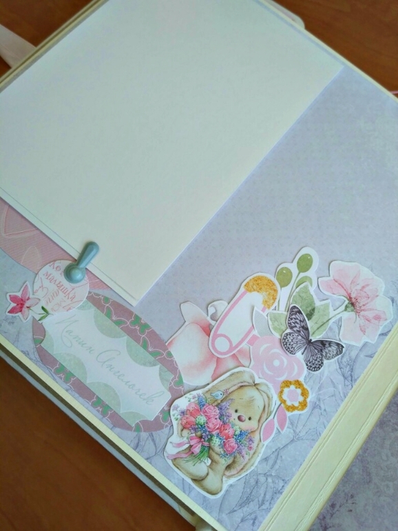 СкрапбукингНевероятно нежный, воздушный альбом для маленькой зайки. Формат альбома 21*21 см, 6 разворотов, вмещает более 60 фото стандартного размера. Альбом выполнен преимущественно в розово-сиреневых и нежно-зелёных тонах с добавлением золота. Чудесные стихи, надписи и картинки делают альбом таким добрым и уютным. Также в альбоме есть потайные разворотики, кармашки и бирочки. Нежная зефирка для малышки. К альбому идёт пакетик.