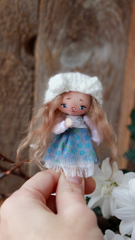 Украшения, бижутерия.Добрый день! Я к вам снова с девочками-брошечками..Малышки сшиты из хлопка, ручки подвижные из фимо. Шапочки связаны на спицах. На спинке крепление. Личики расписаны акрилом, маслом и пастелью.Ростик от 6 до 8см.