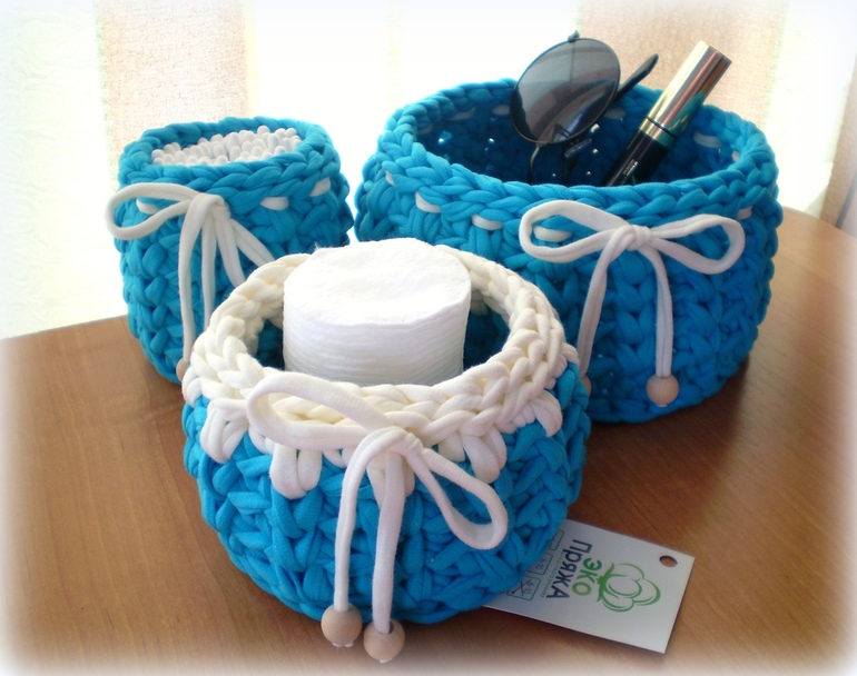 . Навязала интерьерных корзинок. Очень удобные штучки оказались))