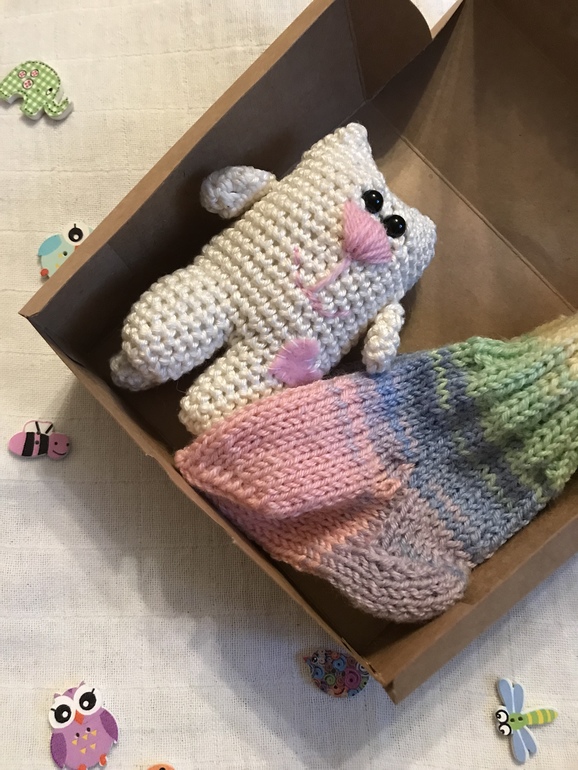 Подарки, игрушки, погремушки для новорожденных.Когда родился сын, увлеклась вязанием детских носочков для подарка. Фото и описание под кат. Котик в первом наборе тоже моих рук дело. Кому интересно-пишите, Новый год не за горами:))