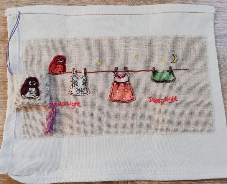 Вышивка картин. Крестиком, гладью, бисером, стразами, лентами, схемы по вышивкам, процессыНа очередной обмен рукодельными мелочами (не на этом сайте) я сделала пижамницу по схеме из ВК. Вот такая простенькая, но милая. Улетела в Германию.