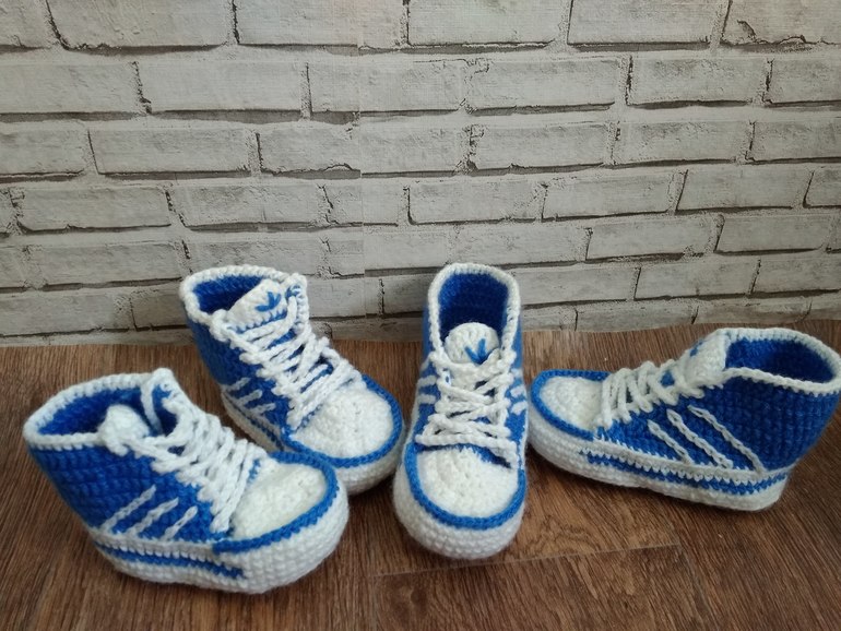Мои последние кеды, вязала на заказ. Не идеальные, но заказчица довольна