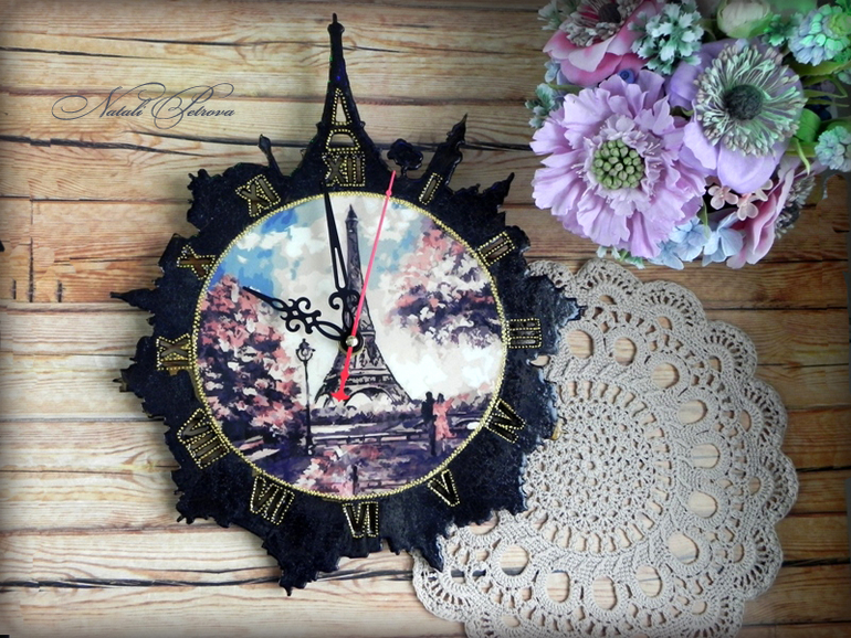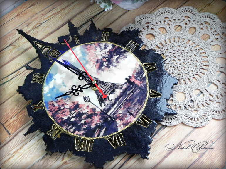ДекупажПравильно говорят, что никогда не нужно зарекаться. Обещала больше не делать подобных часов, но не вышло. Две заготовки в моих закромах нашлись. Одни сделала для моей подруги Тани Колесниковой, но они полная копия предыдущих, поэтому не показываю. Эти немного в другой цветовой гамме. И больше я к ним точно не вернусь просто потому, что заготовок таких в моей городе не продают, а заказывать из другого не хочу. И так склад всего уже, можно самой магазин открывать.