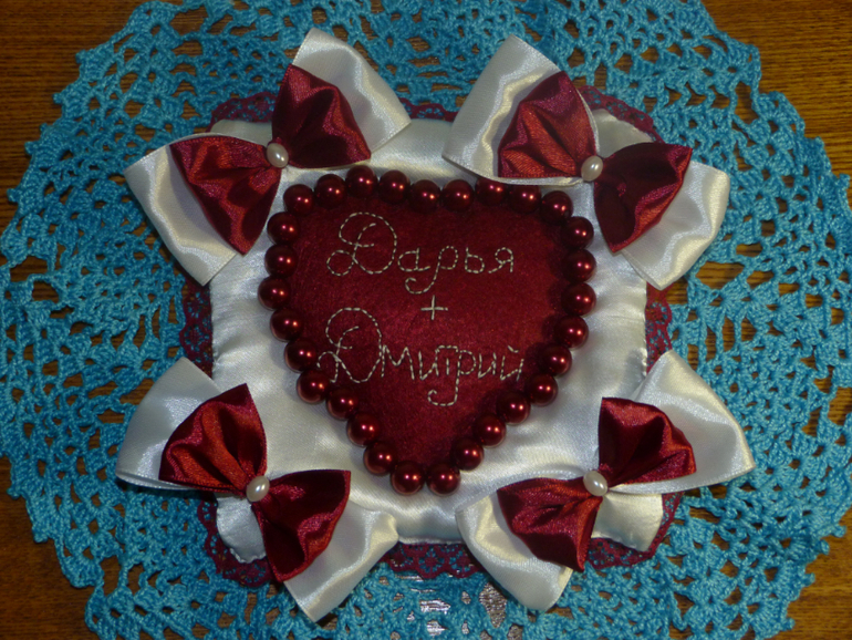 Это подушечка для колец от свадебного набора и сбер книжка (проба пера).