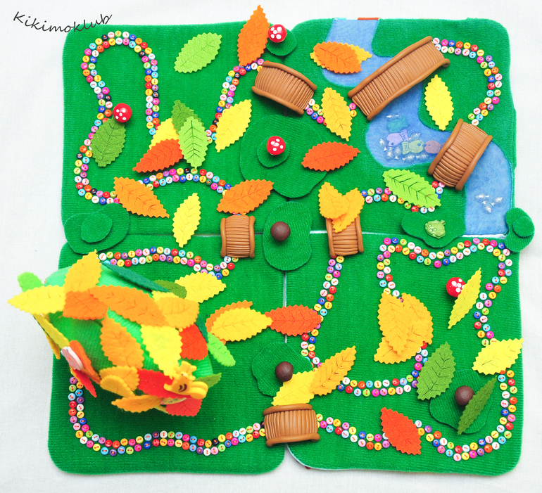 Так же есть два дополнительных листа с пуговичными дорожками. Помимо всего прочего на получившемся игровом поле можно учить с ребенком времена года.