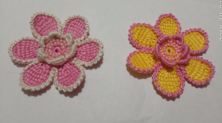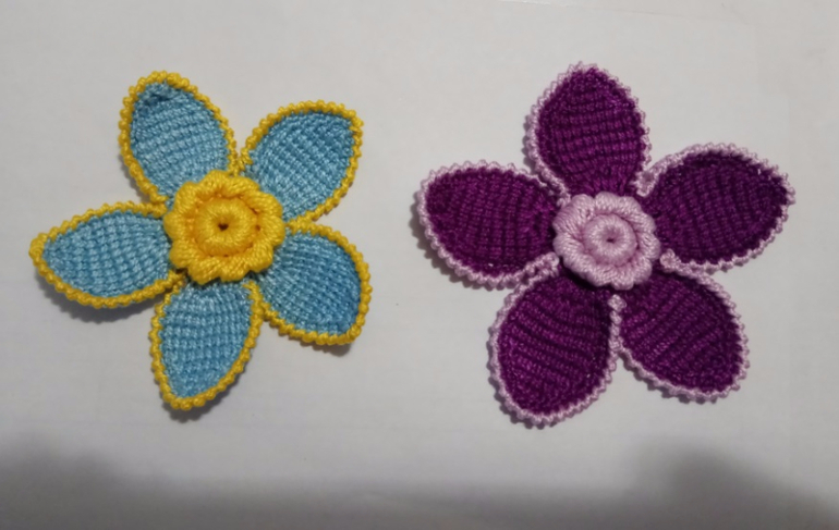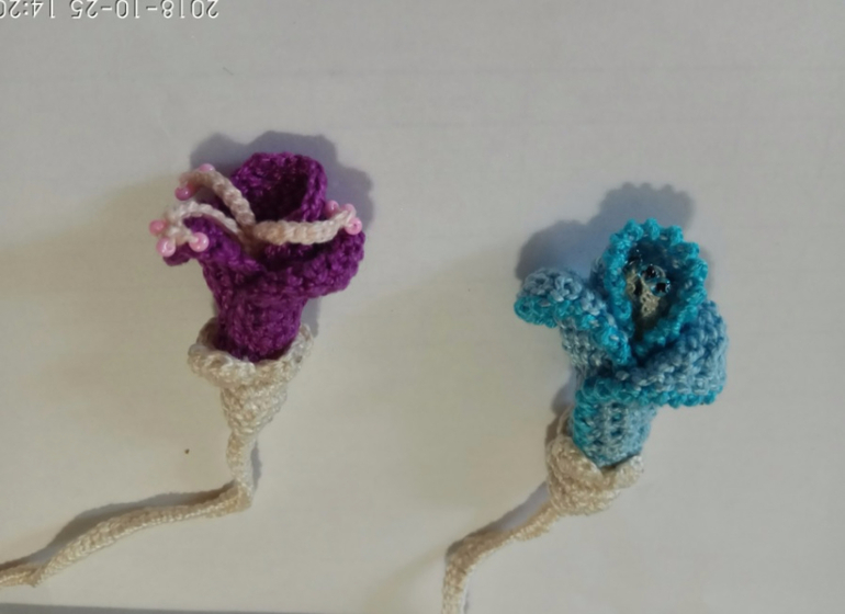 Цветы и бутон связаны в тунисской технике.