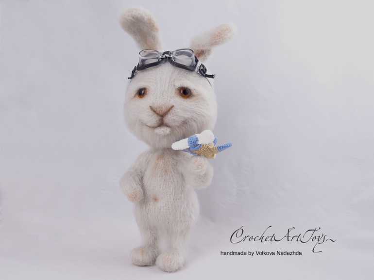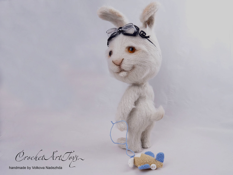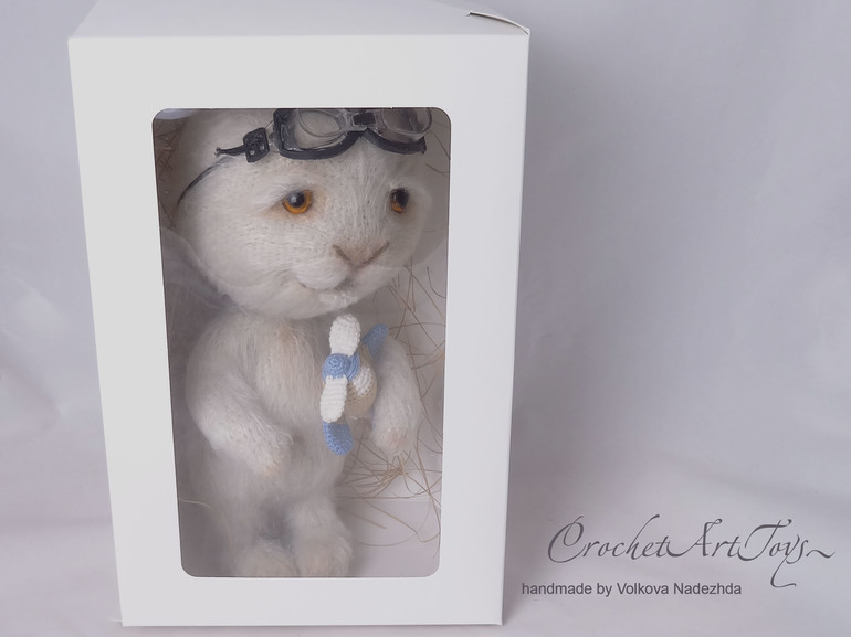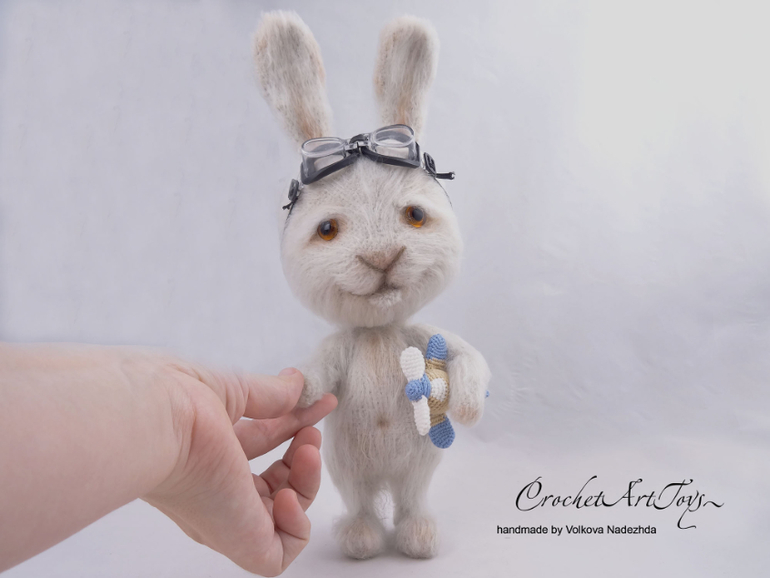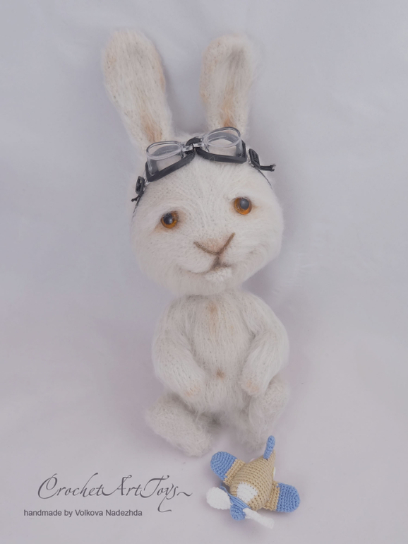 спасибо) я тут пыталась убить 2 зайцев одним выстрелом) Заяц изначально вязался в пару вот к этому котику, поэтому он с самолетиком) а потом мы немного поигрались с образом)