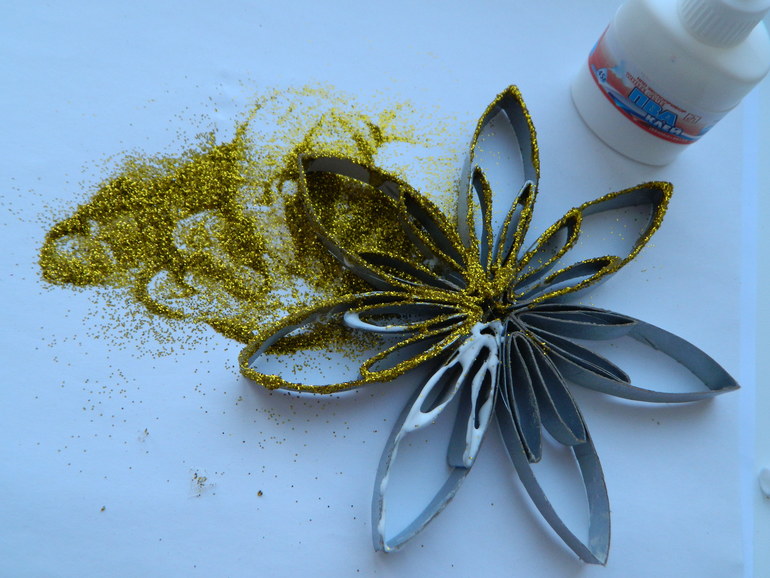 Наношу клей ПВА, либо кистью, либо прямо из тюбика. Мне понравилось наносить клей прямо из тюбика, потому прилипало больше блесток.