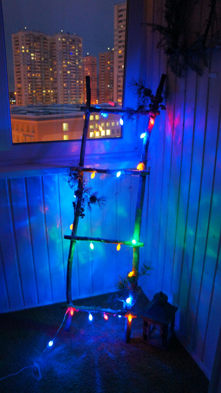 Обычно на Новый год чего-то мастерю,а в этот раз была занята.Но за несколько дней до НГ всё же не смогла пройти мимо идеи сделать окошко и лестницу,благо лес с сухостоем рядом))) Делается все очень быстро,пошло все ,что было под рукой,в этот раз не заморачиваясь особо)