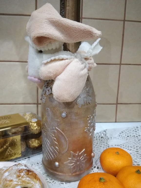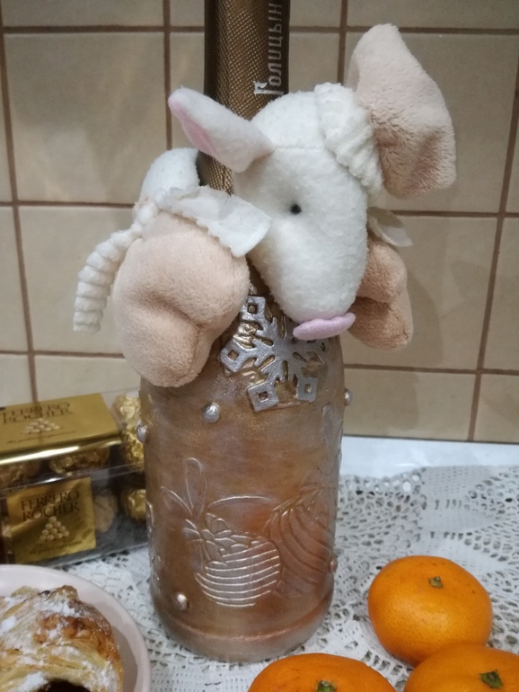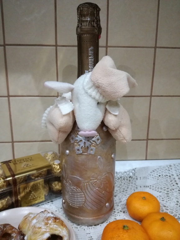 Всё началось с этой игрушки. Захотелось как-то приспособить её на бутылку.