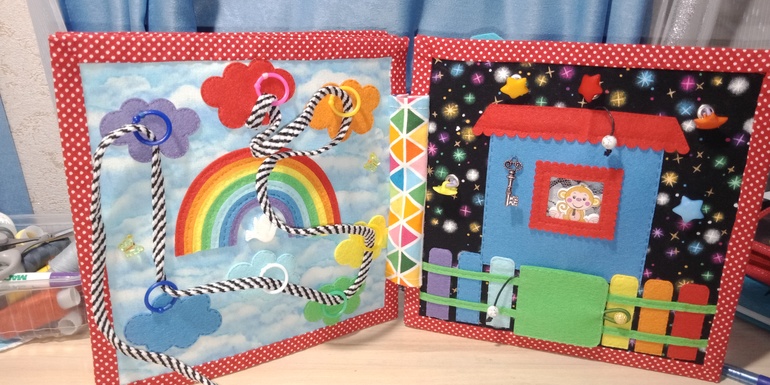 ФетрМиленькая книжка с простыми и очень понятными сюжетами. Наконец не "на вырост", а по возрасту младшего сына 😊 Страничек немного, детали крупные. Надеюсь, что играть с ней будет приятно. Шилась легко и непринужденно, и опять руками, без единого стежка на швейной машинке.