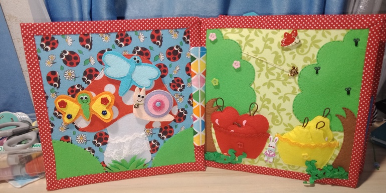 Спасибо! 7 страничек - это уже книга, с тремя разворотами и обложкой, а на задней обложке можно кармашек сделать))) Кучу идей и выкроек можно посмотреть на пинтерес.