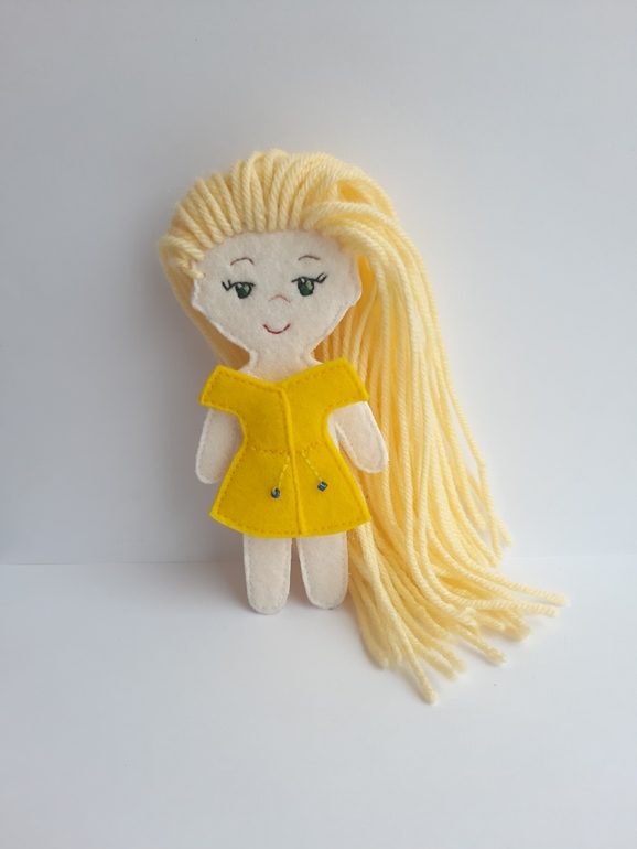 Куколка из фетра с волосами из пряжи. Такую куклу можно не толтко наряжать, но и заплетать