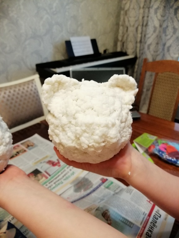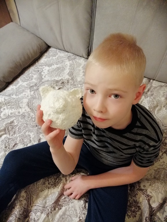 Организовала папье - маше (на шарик надутый) , сверху, когда высохло, акриловая шпатлёвка и краски.