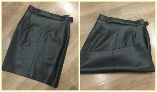 Юбка: экокожа, размер 40. Сбоку-молния. Размеры: длина 50-55, талия 65-68, бедра 93-96. Ткань немного тянется, подойдет и на больший размер