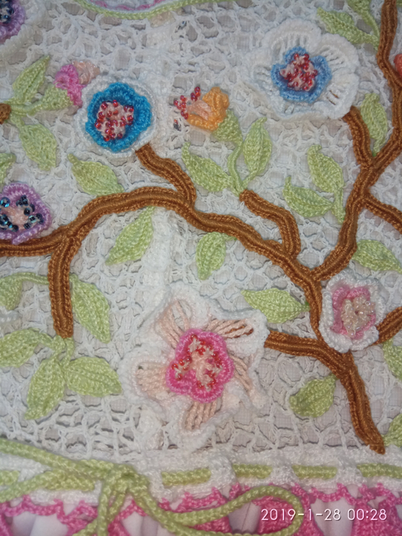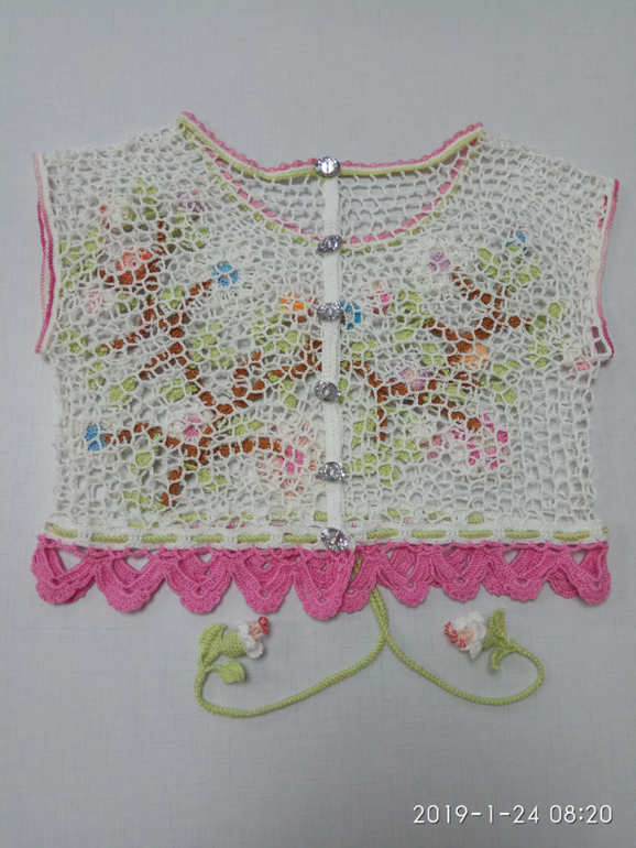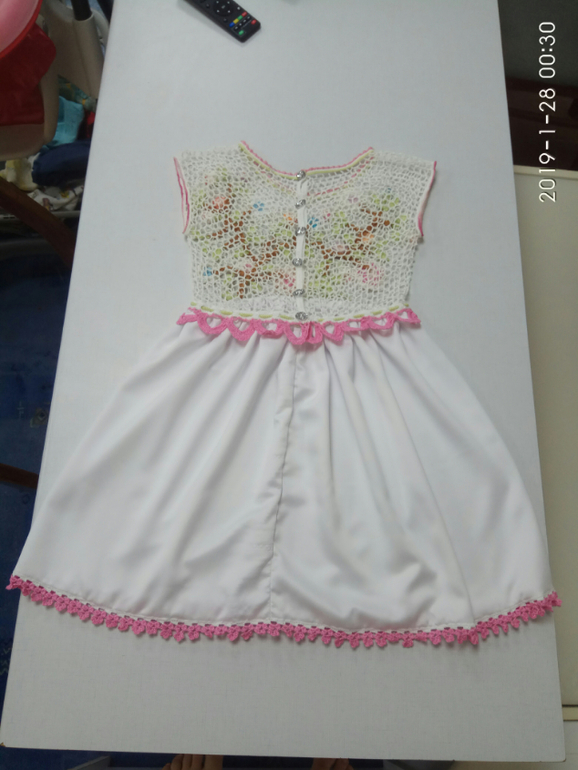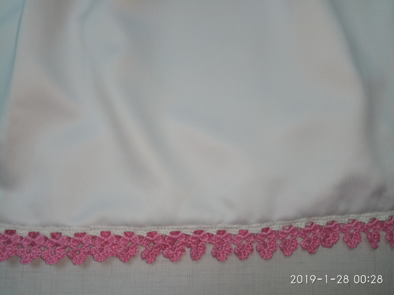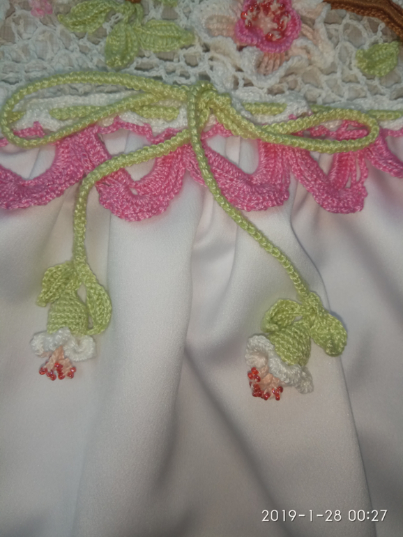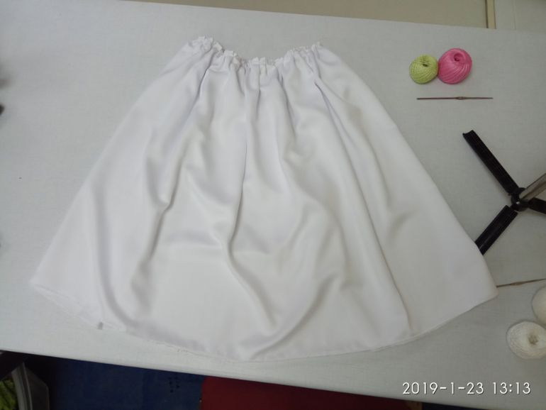 Для вязания мне понадобились нитки ирис и кружевница, а так же крючок 0,95. Юбка сшита из сатина.