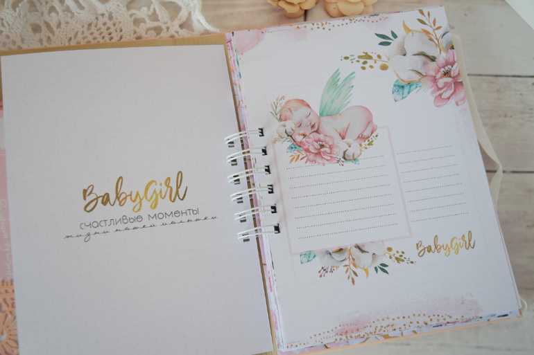 СкрапбукингНемного нетипичный дневник, он без привязки к месяцам, просто красивые страницы для мамочки, любящей простор и отсутствие ограничений) Обложка из итальянского кожзама, закрывается на мерцающую резиночку: