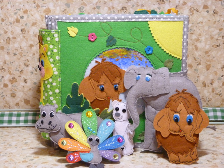 ФетрЗдравствуйте ! Хочу показать вам свою новую книжечку "Мама для мамонтёнка". Книга сшита в рамках СП Елены Петровой, выкройки так же предоставила Елена. Очень яркая и добрая получилась у меня сказка со счастливым концом. Размер книги 20 см./20 см., упакована в сумочку. Подробности под катом, очень много фото, более 5.