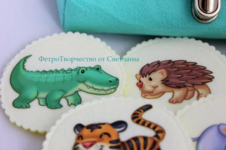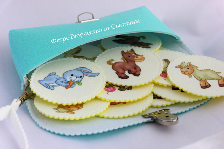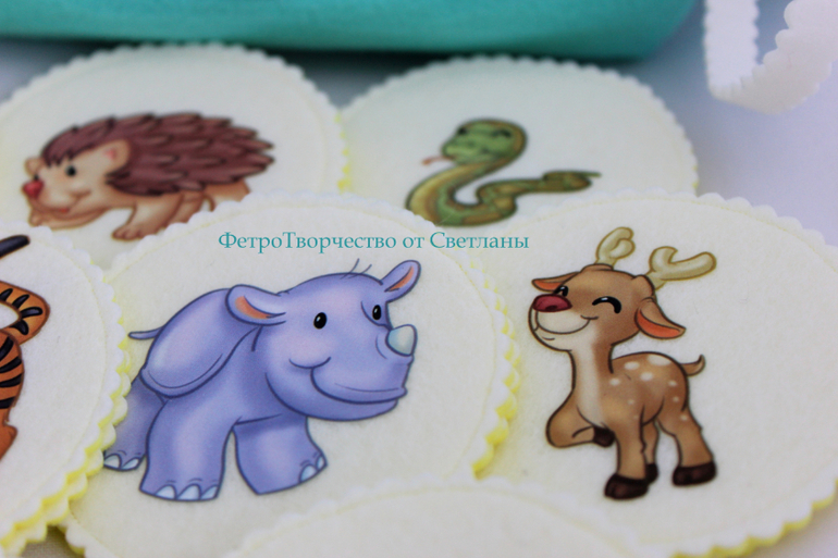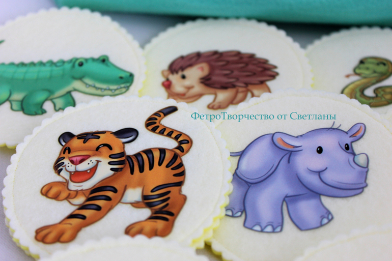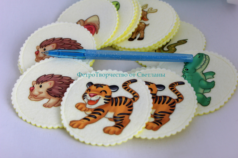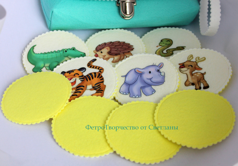 Она представляет собой набор парных карточек . В моем случае 8 пар ( 16 карточек ) с изображением домашних животных . Игра выполнена из высококачественного корейского фетра .