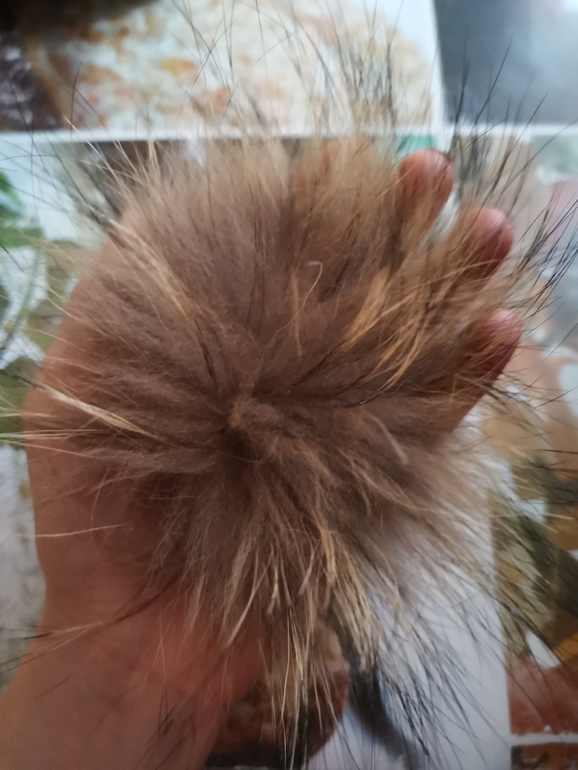 Купите такой же пушок с заклепкой. Пришейте заклепку и пристегните пушок. Недорого и без заморочек)))