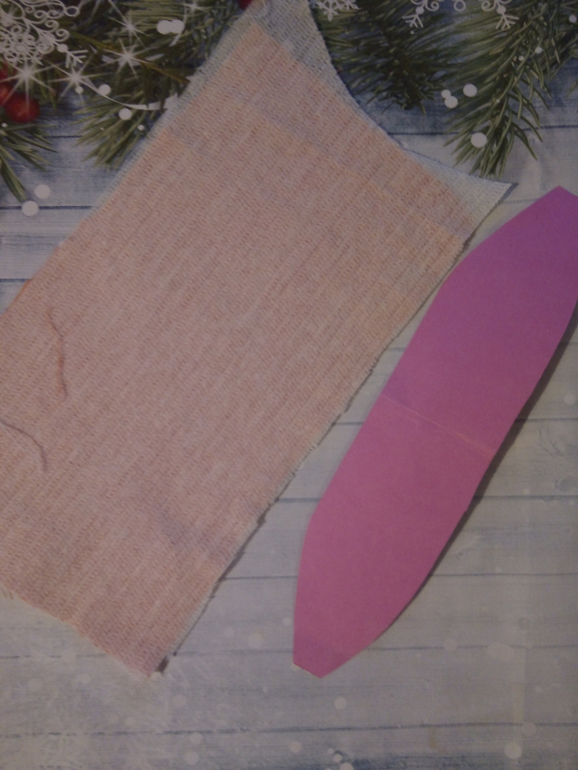 1) Измеряем головку нашей куколки от уха до уха и чертим выкройку,ширина по вашему усмотрению..у меня примерно 5см .Ткань проклеиваем дублерином