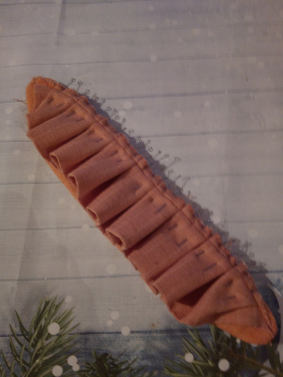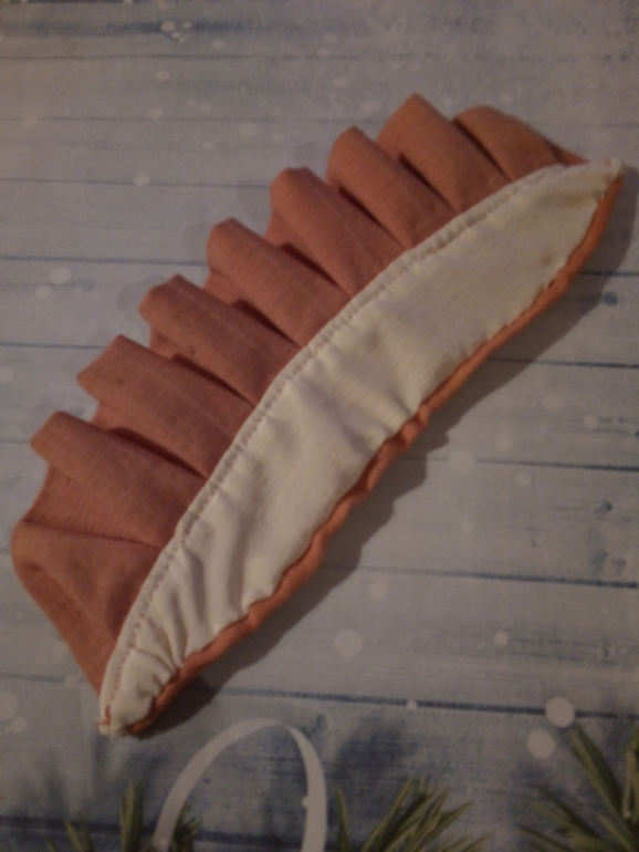 3) Скалывем части нашего боннета делая складки и прошиваем