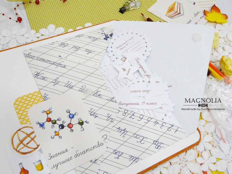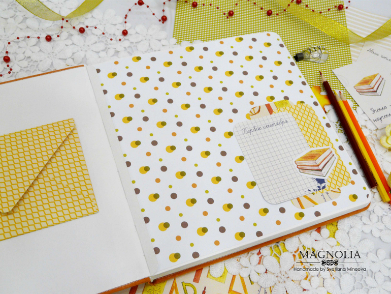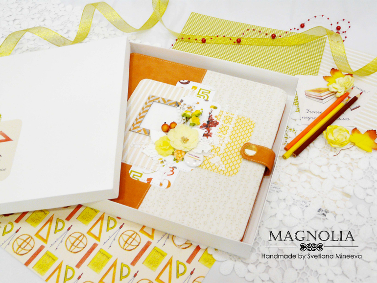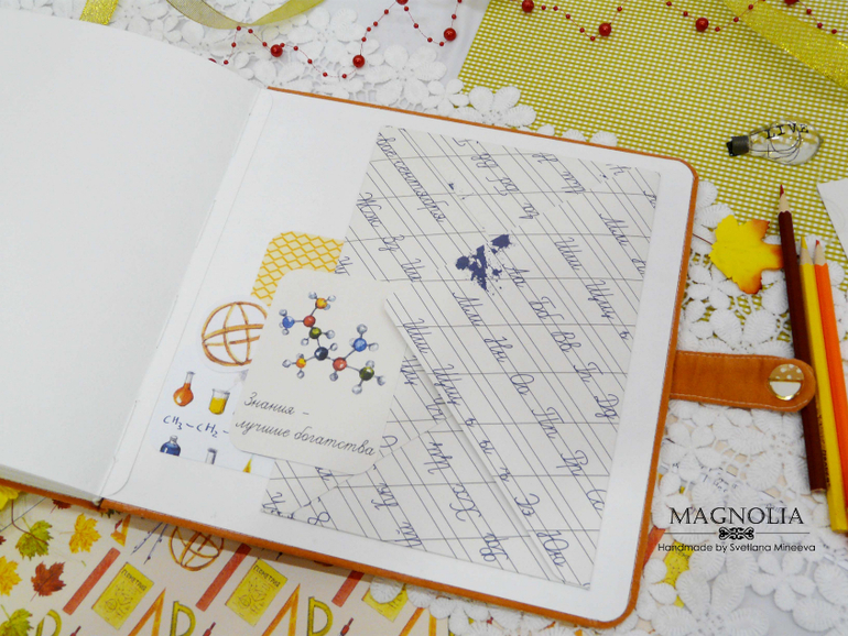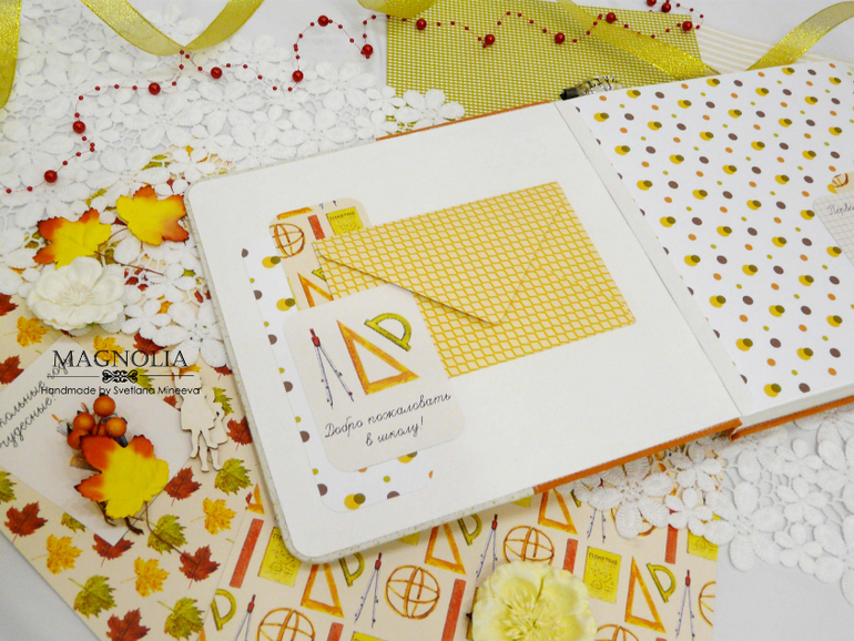СкрапбукингВсем привет! Школьный альбом с книжным переплетом для девочки был подарен на первое сентября прошлого года