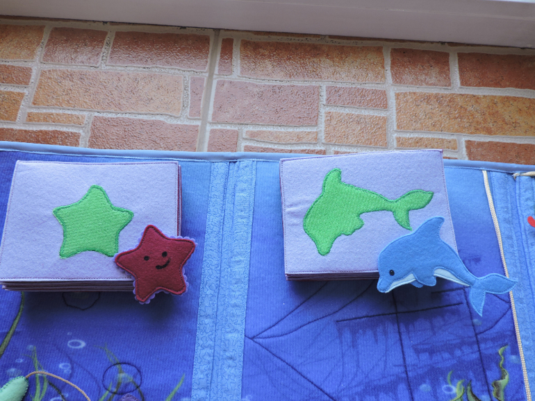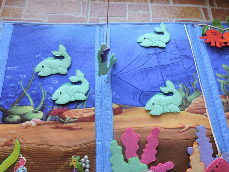 Развивающие игрушкиМорской планшет. Изначально идея была сделать только дельфинов, но посчитала, что им одним будет скучно. Поэтому в итоге получилось так.