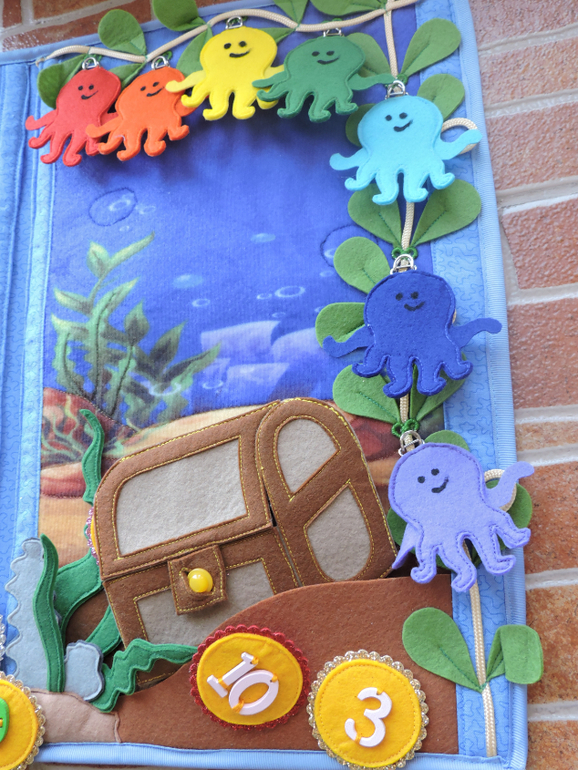 С помощью осминожек изучаем цвета радуги. В сундуке спрятаны сокровища- изучаем счет до 10.