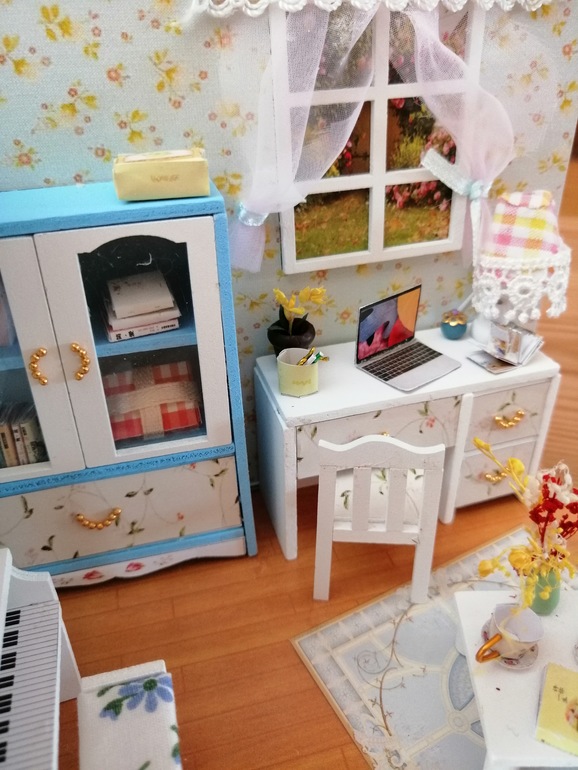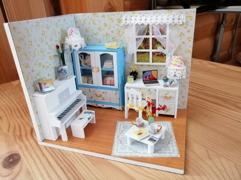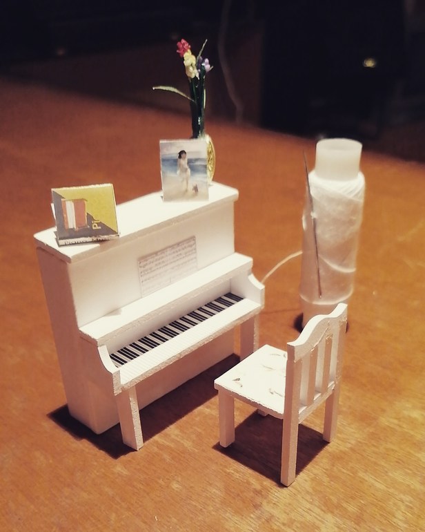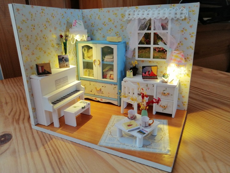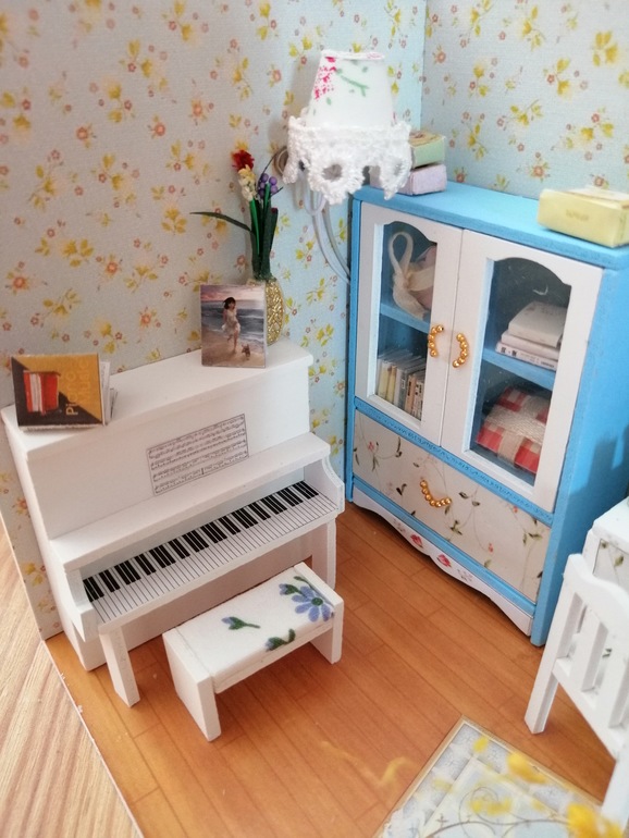Очередной шедевр! Обожаю ваши работы и разглядывать мелкие детальки) фотография! На принтере напечатано? Или нарисована миниатюрка?) книжечки, крошечные чашечки, ручки из бусинок у мебели))) ноты написаны!! Как?!))