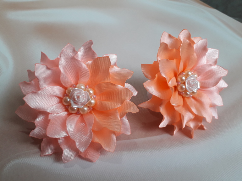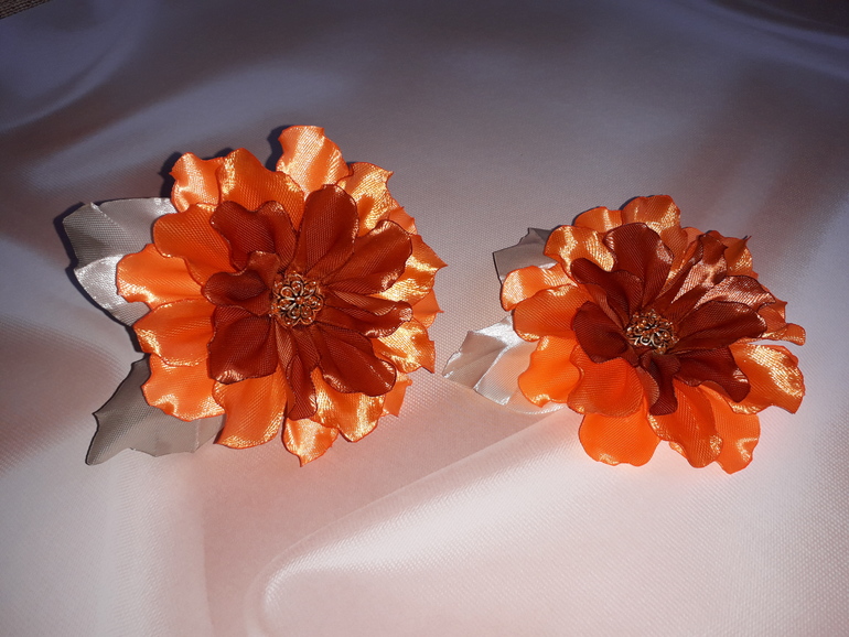 Цветы из ткани и форма. Канзаши. Украшения для волос.
