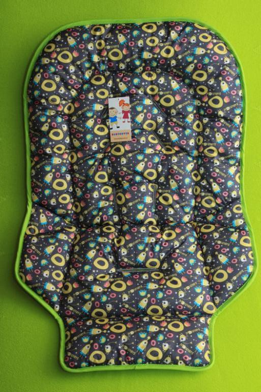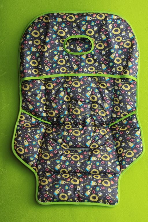 3. Чехол на стульчик для кормления Liko Baby. Принтованная плащёвая ткань в расцветке "Монстры" с водонепроницаемым полимерным покрытием внутри, наполнитель - холлофайбер плотностью 500 гр., все прорези под ремни и отстрочки выполнены, жёсткие пластиковые вставки в нижней части чехла и в боковинках присутствуют