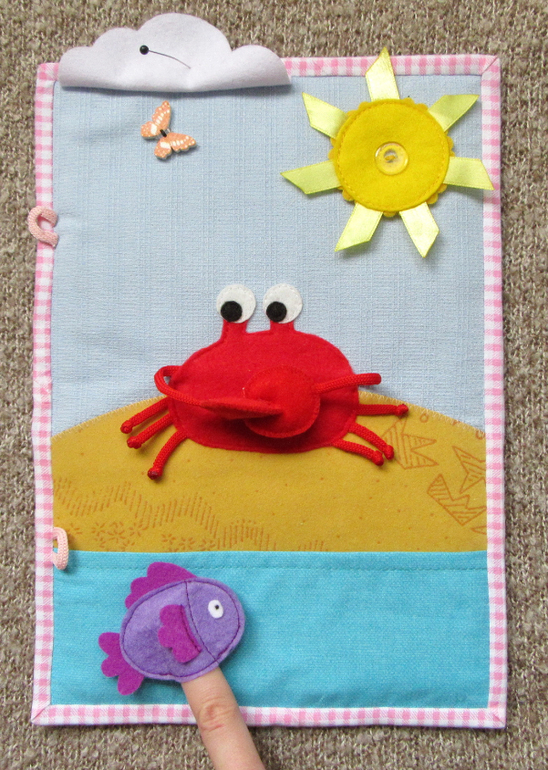 В кармашке-волне прячется рыбка (пальчиковая игрушка).
