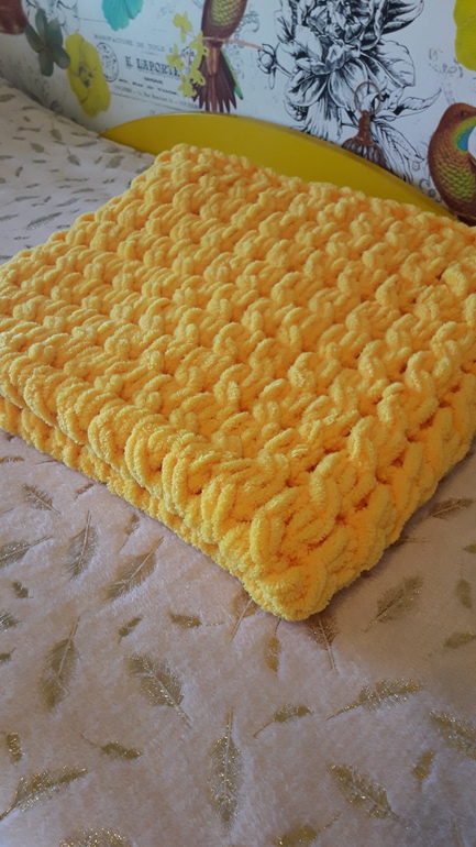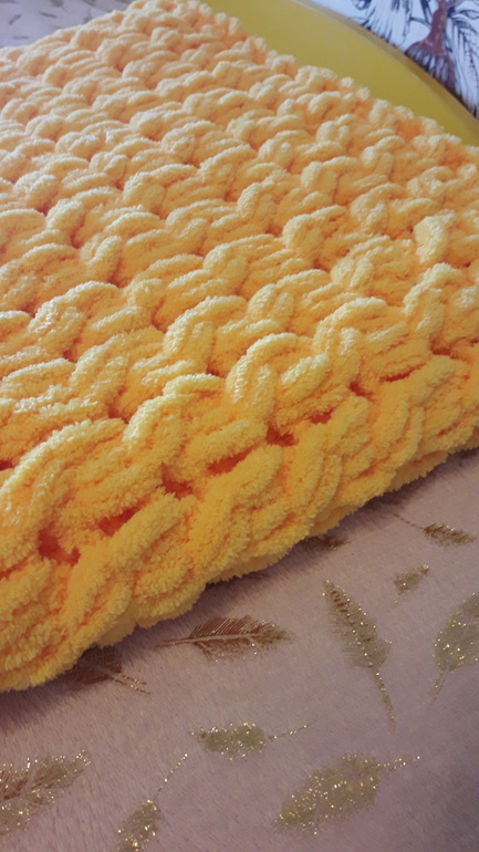 Вот такой чудесный, нежный и милый плед получился у меня из не менее чудесной пряжи Alize Puffy.