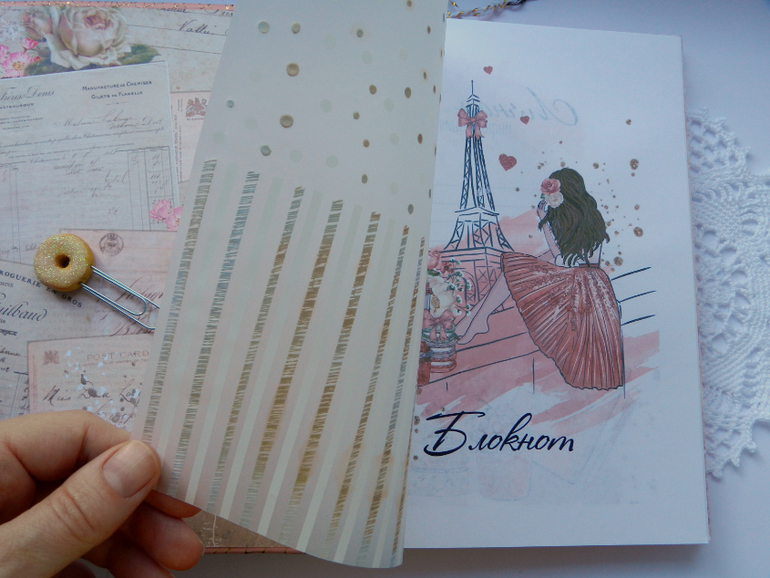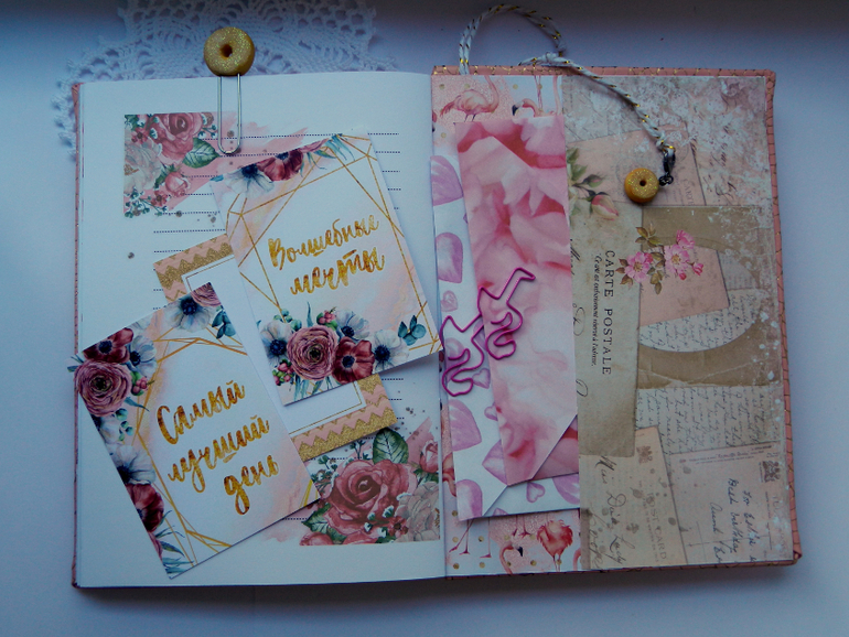 СкрапбукингДоброго дня! Покажу нежный ежедневник, который будет подарком для девочки-подростка. Розово-персиковая обложка с золотой геометрией, подвеска и скрепка-закладка пончик с позолотой, девочковые акварельные странички будут хранить девичьи секреты. На заднем фарзаце кармашек для карточек-закладок и конвертов. Далее много фото.