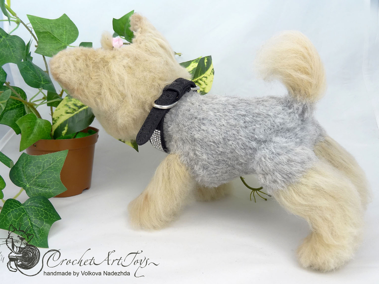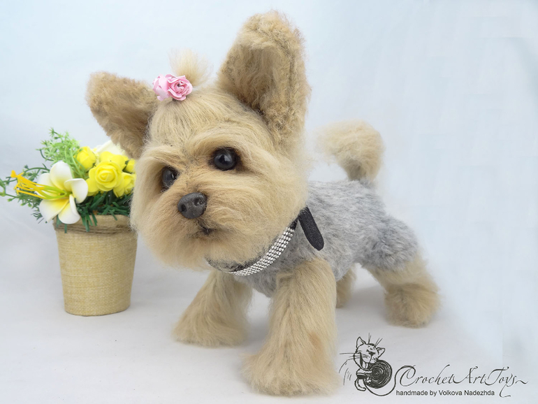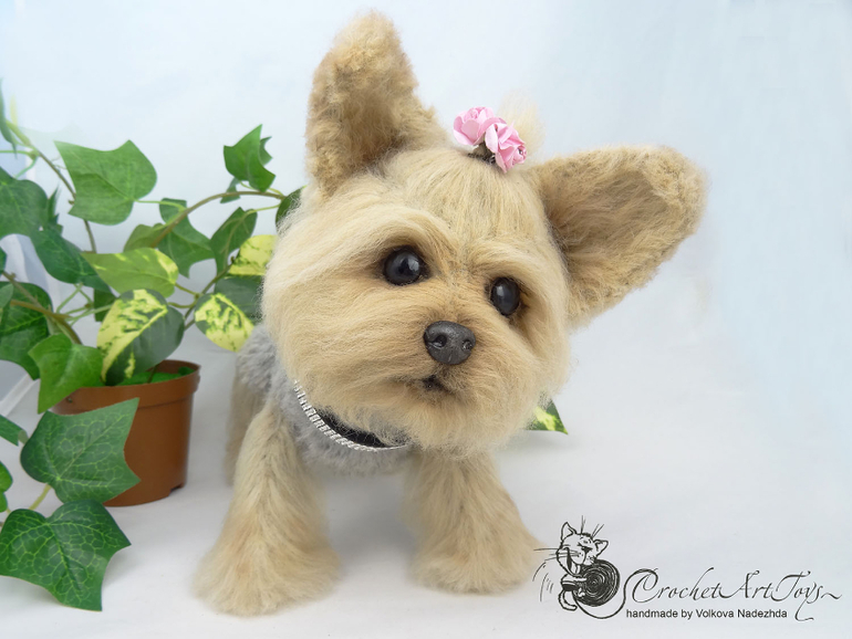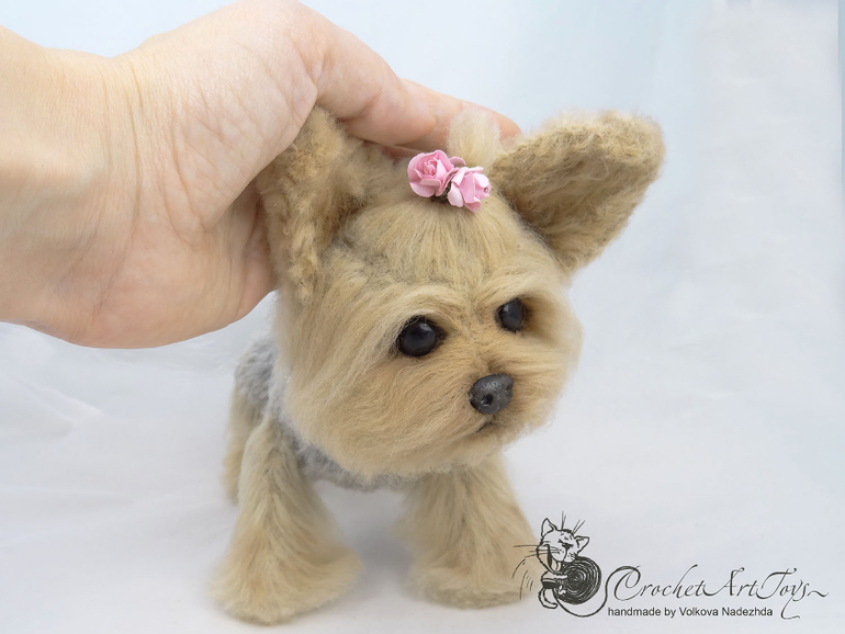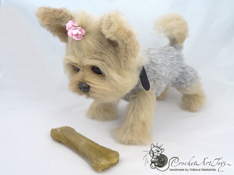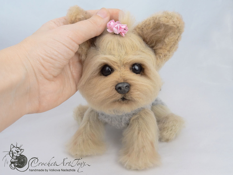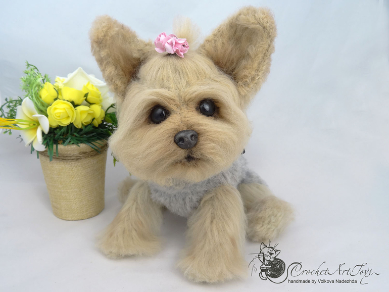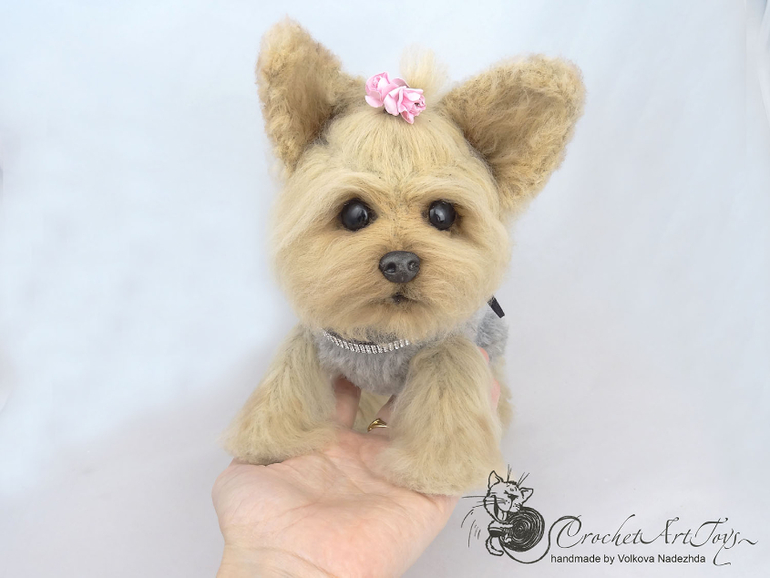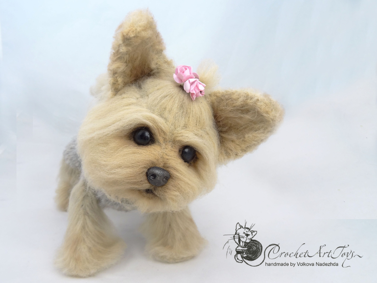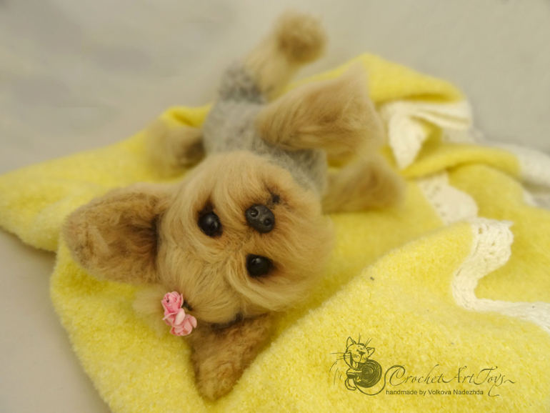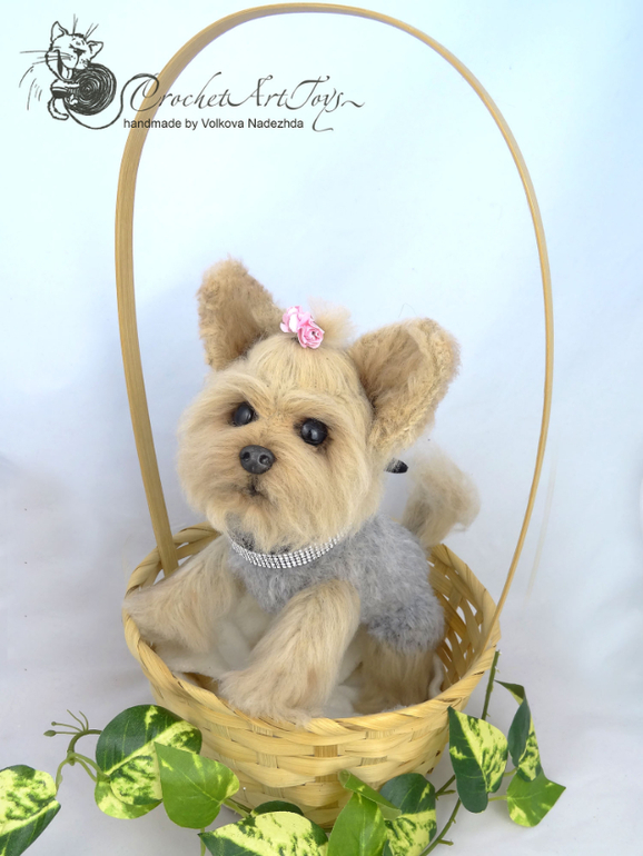 Амигуруми (вязаные игрушки)По мк Татьяны Коротких связалась малютка йорк терьер. Ростиком 18 см, пряжа бобинная мохерсодержащая. Голова поворотная на шплинте, лапки и хвостик подвижны за счет каркаса, глазки стекло, носик слеплен из полимерной глины.