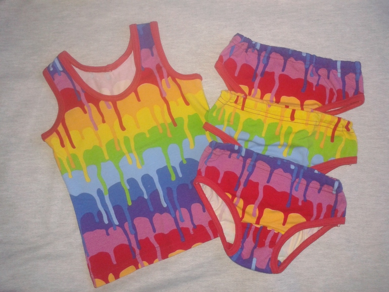 Шитье одежды, выкройки, ремонт одежды, шторы, швейные машины (уже приобретенные)Сшилось у меня несколько комплектиков трусики и маечки, для маленьких ярких модников ) под кат много фото.