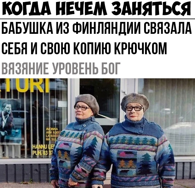 Алла в Рукоделие 7 лет Высший уровень мастерства! Рукодельная беседка Посмотрите еще 20 записей на эту тему Отменить Ответить Юлия Завидую людям, у которых СТОЛЬКО свободного времени 13.04.2019 Ответить Елена Очуметь 11.04.2019 Ответить Джиглипуп Бабуля классная)) 11.04.2019 Ответить Марфушенька-душенька Деда ей не хватает 11.04.2019 Ответить Алла Его бы тоже связала) 11.04.2019 Ответить Марфушенька-душенька Об этом я и не подумала))) 11.04.2019 Ответить Катерина Охренеть🤪 10.04.2019 Ответить Ирена Там еще и собака была) 10.04.2019 Ответить Алла Вот это да! 10.04.2019 Ответить Creative owl (Liebe-liebeЛюбовь) Собака страшна конечно)) Бабка крутая)) 10.04.2019 Ответить вера Собака была пробным экземрляром 12.04.2019 Ответить С праздником смеха! Похвастаться. Рукоделие Чаты Беременных Выберите чат: Январята-2026 Февралята-2026 Мартята-2026 Апрелята-2026 Майчата-2026 Июнята-2026 Июлята-2026 Августята-2026