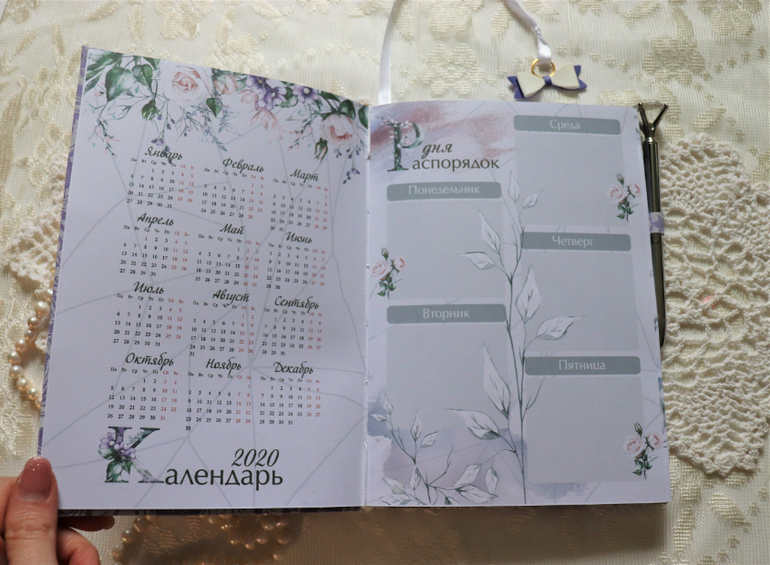 Обложка обтянута чешским хлопком, внутри 156 плотных дизайнерских страниц, ручка в комплекте