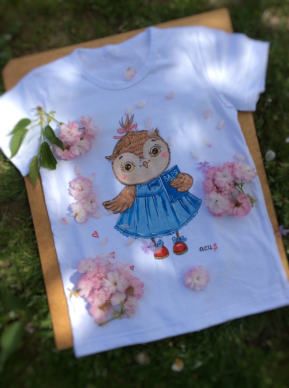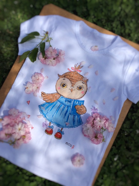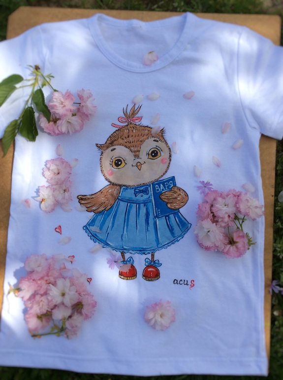 Роспись по ткани, батикДобрый день! Сегодня я хочу показать очередные работы с полюбившимися многими совушками Инги Пальцер. Футболочка для сестрёнки Вари и бодик для братика крепыша Сёмы.
