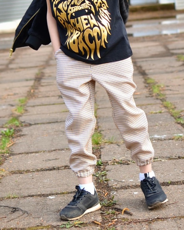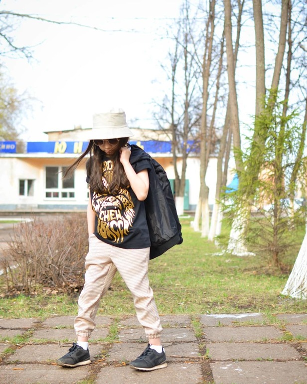 Сшила из костюмной ткани. Изначально планировала простые прямые штанины. Но не очень понравились в деле. Сделала низ на резинке.