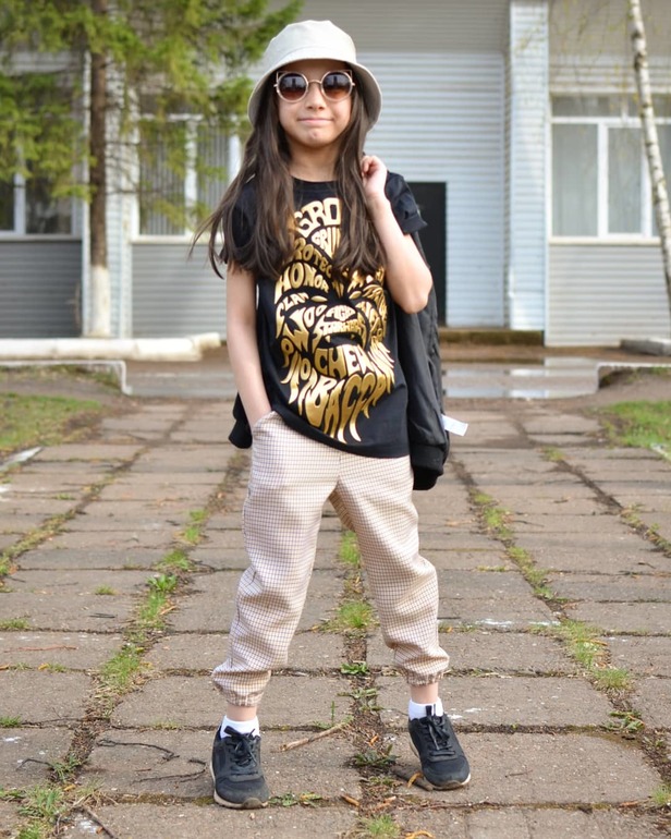 на резинке кажется, что малы, а без резинки, как просто укороченные, но на дочке смотрятся прикольно и так и так.