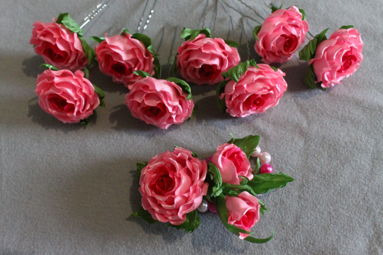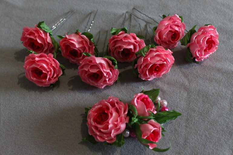 Цветы из ткани и форма. Канзаши. Украшения для волос.У меня дааа)))))))))