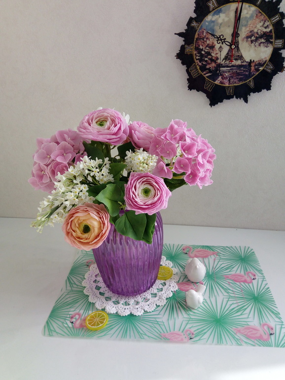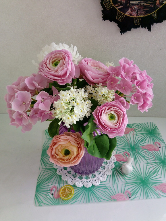 Лепка из пластики (полимерная глина) (ТОЛЬКО ГОТОВЫЕ РАБОТЫ)И всё-таки решила дополнить свой букет ранункулюсами. Думаю, что он от этого стал только лучше.