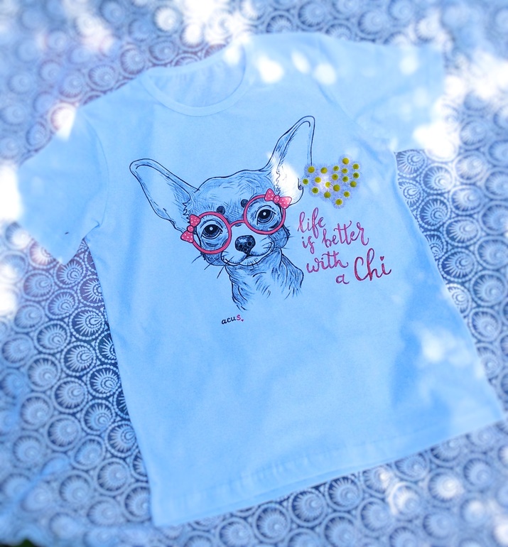 Добрый день! Сегодня я с футболочкой для спортсменки и просто красавицы Викуси. С ее любимой собачкой.