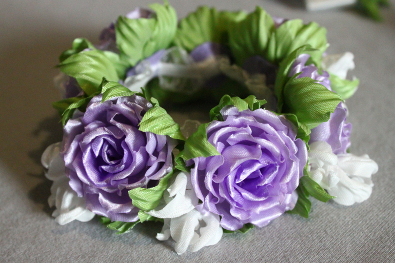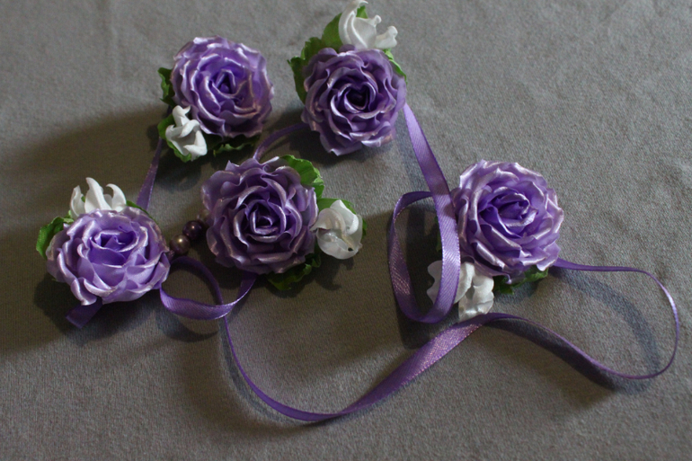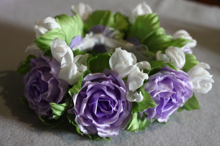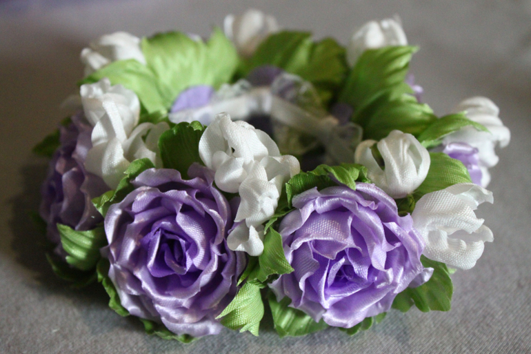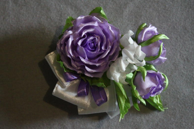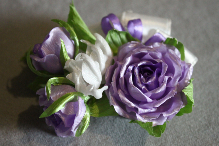 Задач стояло много: сиреневый, нужно было попасть именно в цвет, но, увы, заказанный материал пришел немного светлее, пришлось выкручиваться и сделать серединку розы немного темнее;