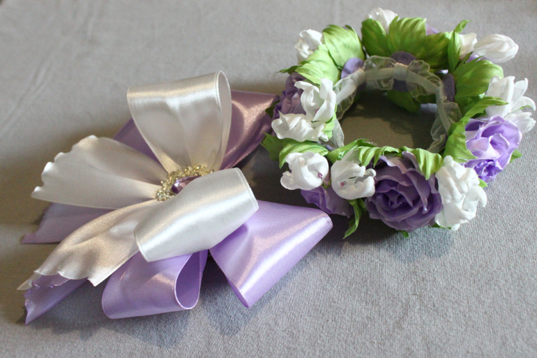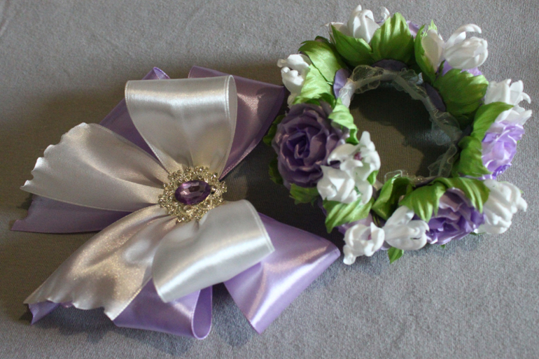 Это комплект из украшения на пучок, броши и ленты в косу, на всякий случай))))